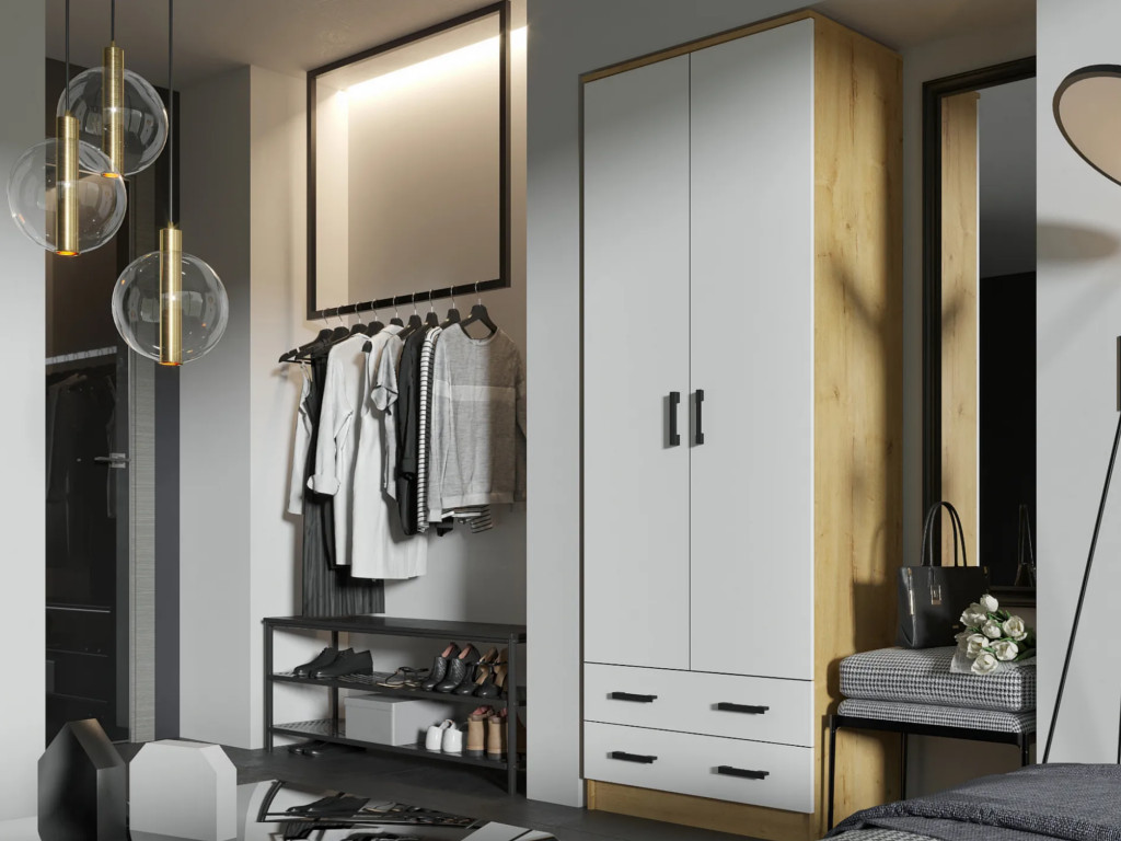 - Шкаф Дуэт платяной вотан/белый гладкий