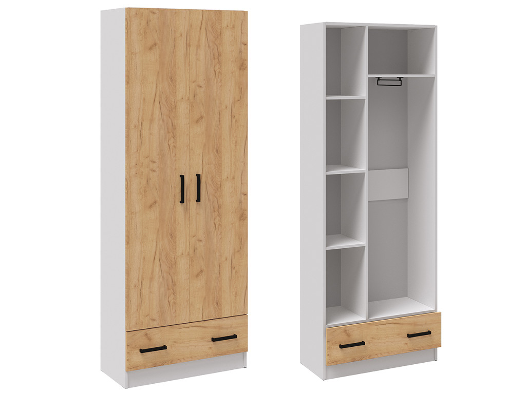 Шкаф двухдверный Кевин белый/дуб крафт золотой