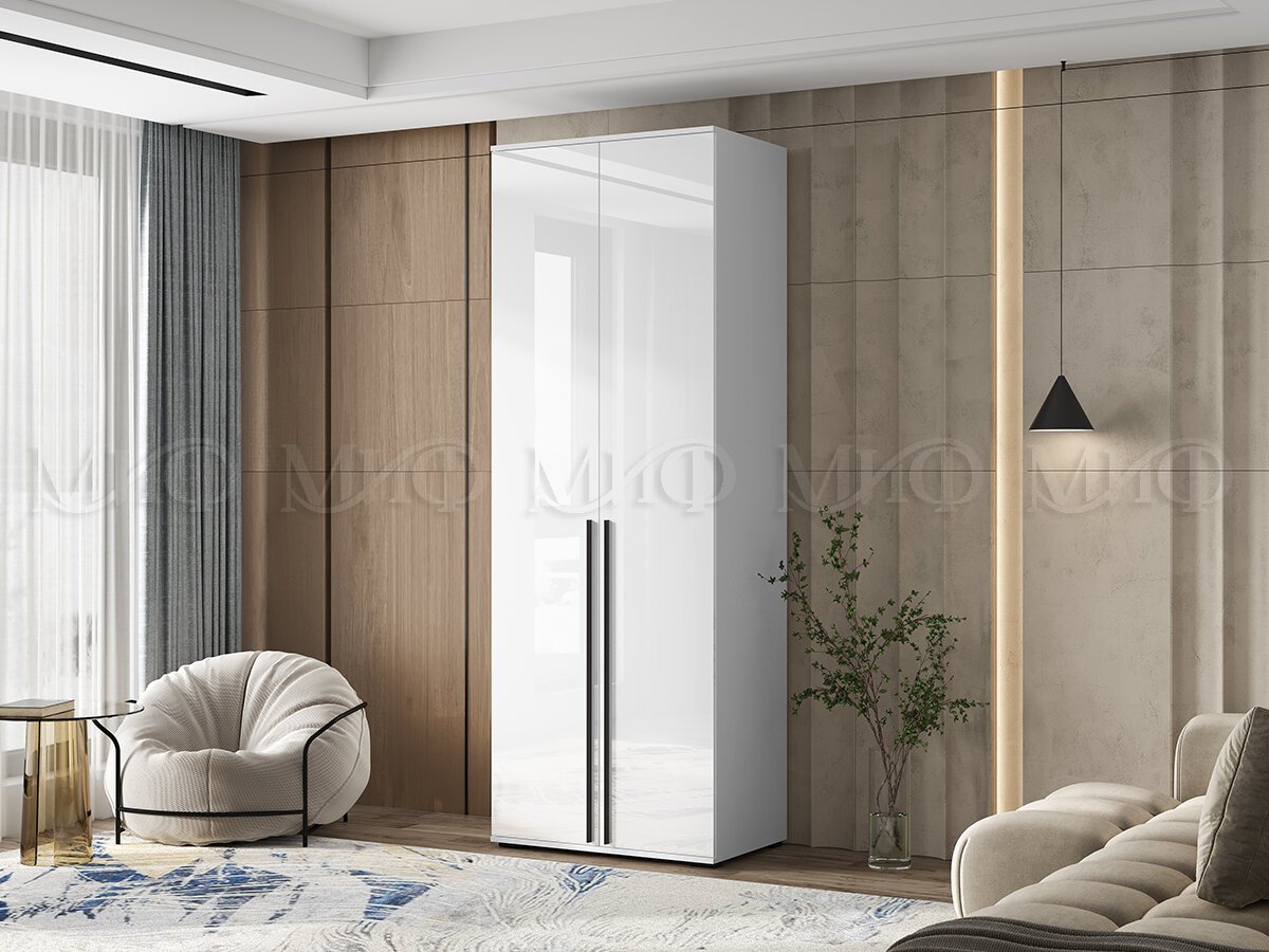- Шкаф двухстворчатый Норд 800 белый глянец МГ