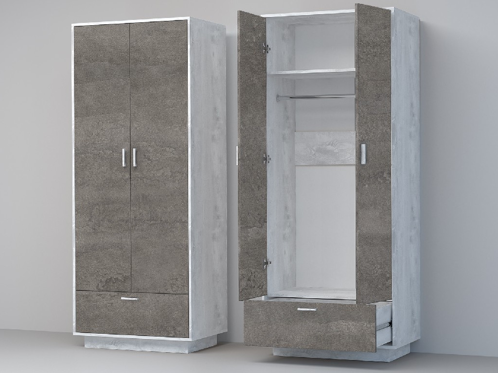 - Шкаф Эго ШК-1 бетон светлый/камень темный на цоколе