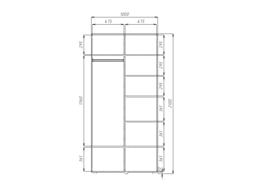 - Шкаф Гранд ГШК/1-21-10-11 (двери тип 1) с зеркалами