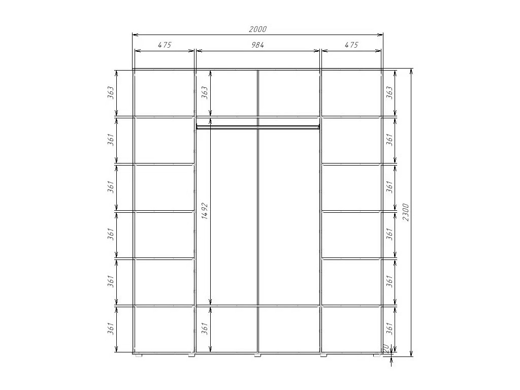 - Шкаф Гранд ГШК/1-23-20-1111 (двери тип 1) с четырьмя зеркалами