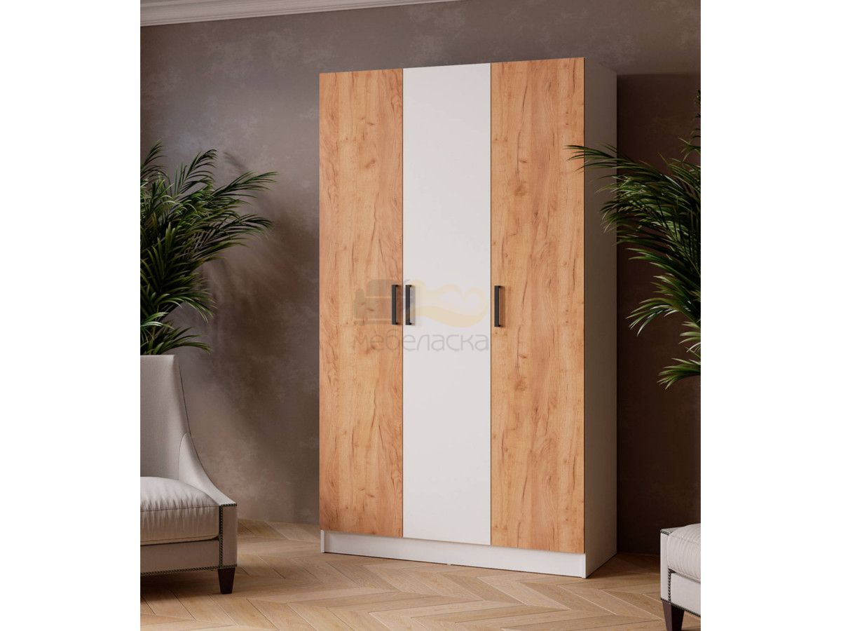 - Шкаф комбинированный Ларс 1200 без зеркала белый/дуб крафт золотой