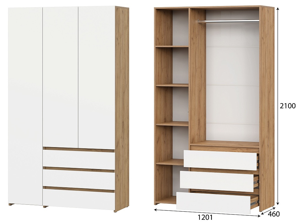 Шкаф комбинированный трехстворчатый Некст 1 Дуб Золотой/Белый