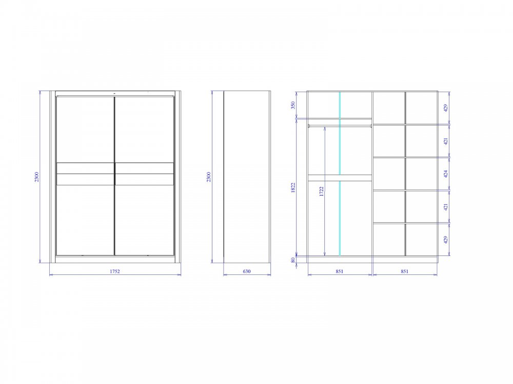 Размер ШхГхВ: 1752*630*2300 мм