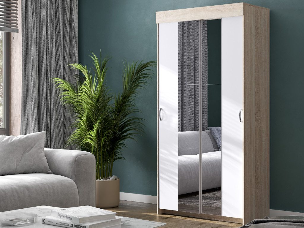 - Шкаф-купе Бассо двухдверный дуб сонома-белый 2 зеркальные вставки