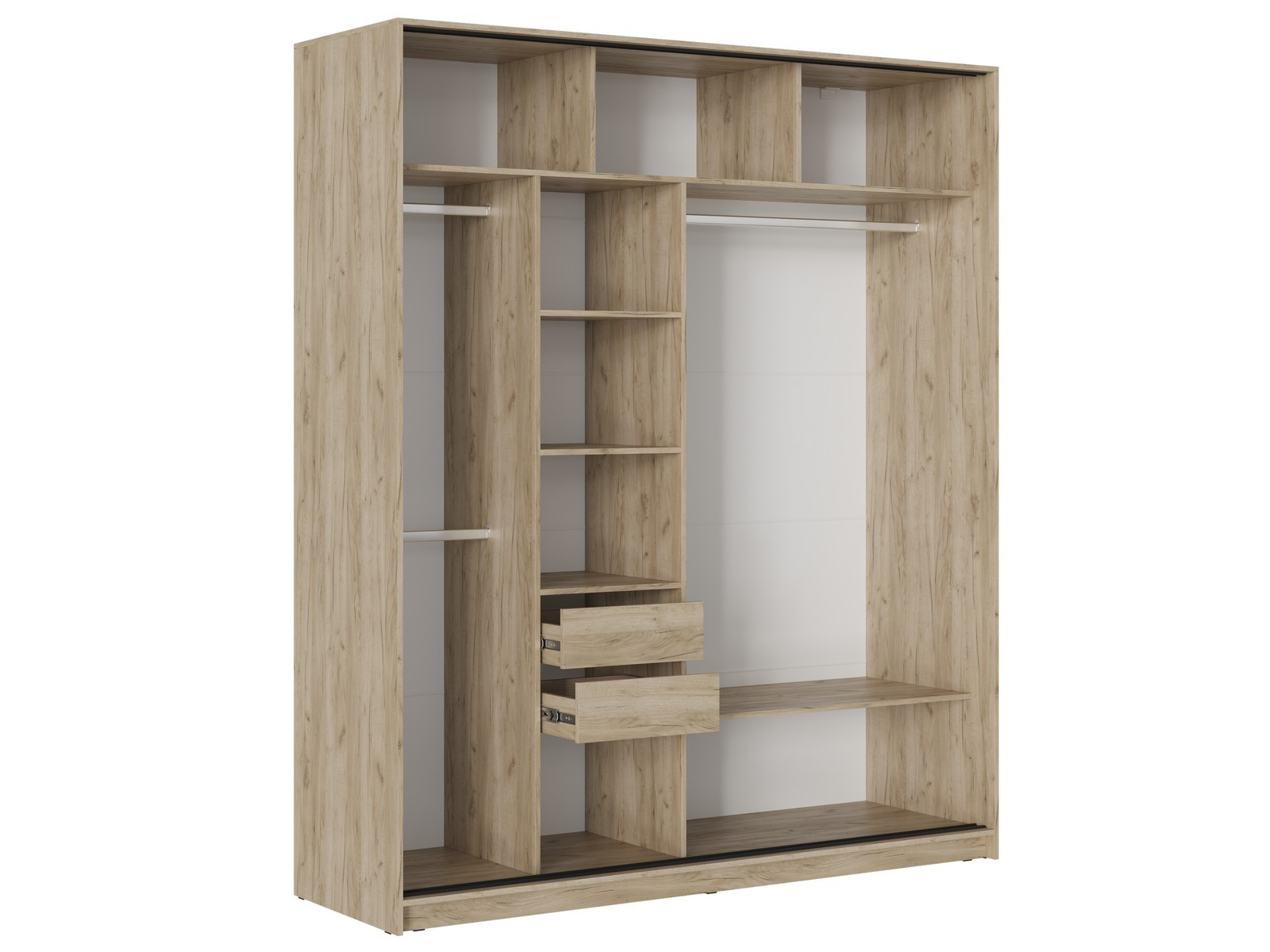- В центральной части, габаритом Д.456 х В.1890 х Г.522 мм, расположены 3 несъёмные полки и 2 ящика.