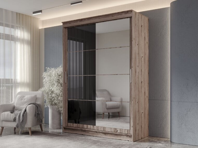 - Шкаф-купе Гранд-1 1600 Дуб Горный-двери Зеркало-Лакобель черный