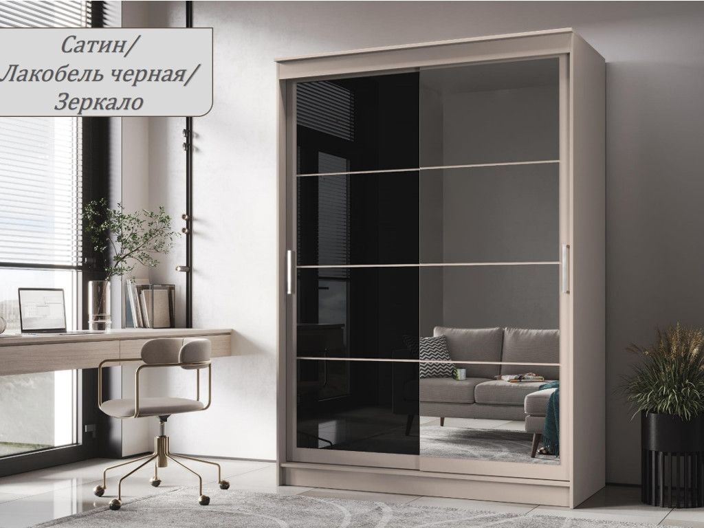 - Шкаф-купе Гранд-1 1600 Сатин-двери Зеркало-Лакобель черный