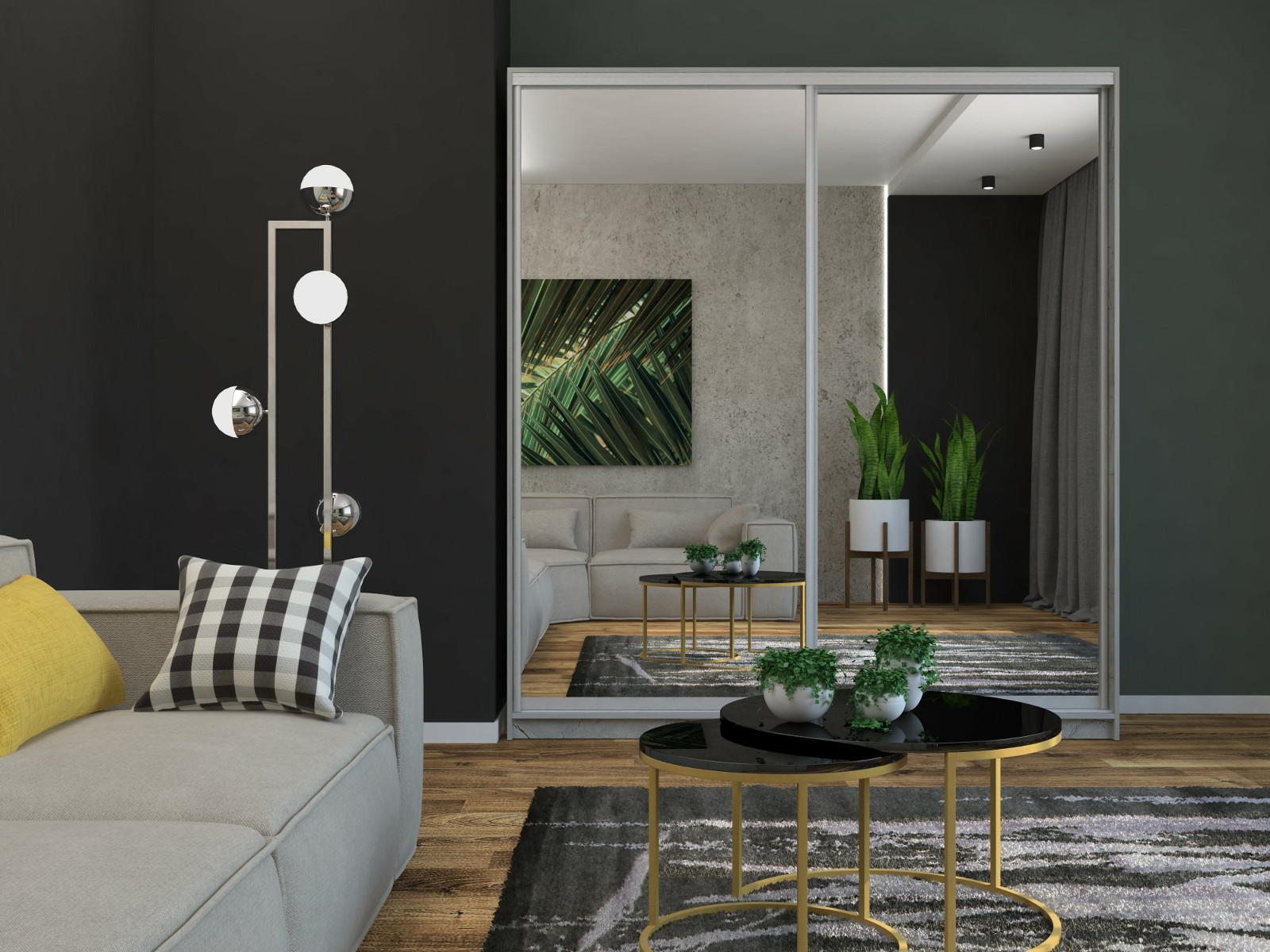 - Шкаф-купе Ксения 1200 зеркало/зеркало серый