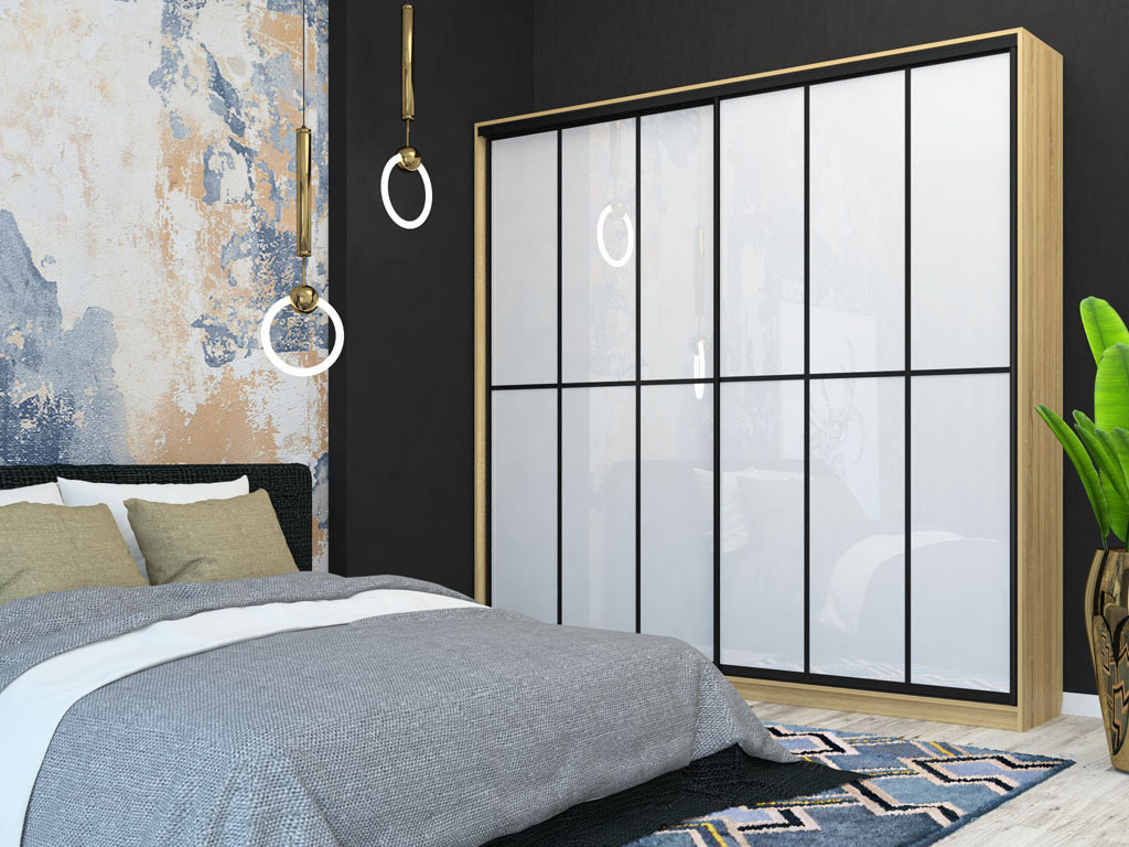 Шкаф-купе Лофт Шк24-60 2400 глубина 600 фасад МДФ белый глянец +