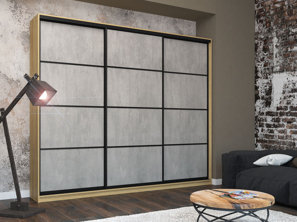 Шкаф-купе Лофт Шк30-60 3000 3 двери глубина 600 фасад МДФ бетон 3г