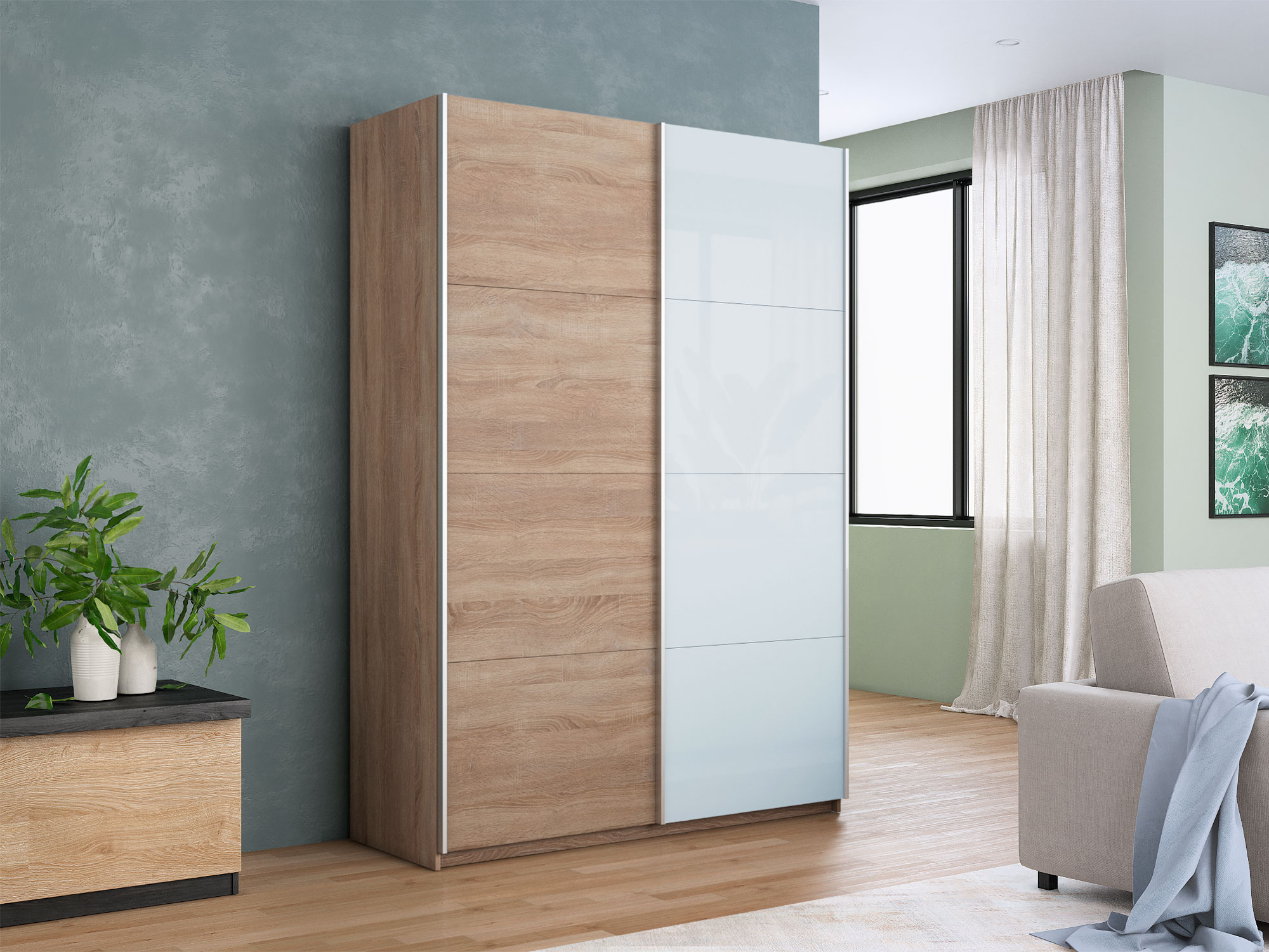 - Шкаф-купе Прайм 2-х дверный 1200 ДСП/Стекло Белое Сонома