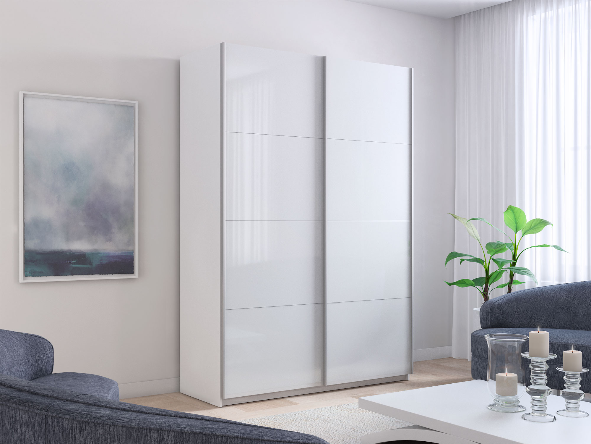 - Шкаф-купе Прайм 2-х дверный 1200 Стекло Белое Белый Снег