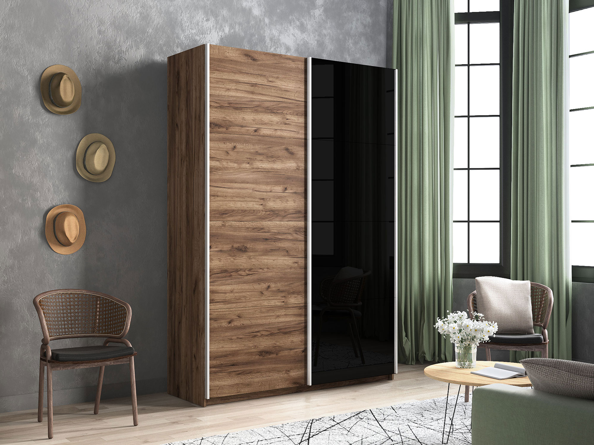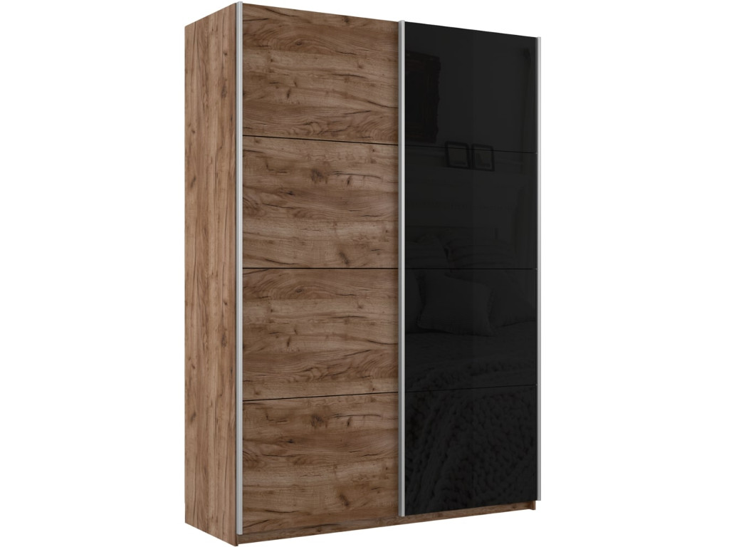- Шкаф-купе Прайм 2-х дверный 1400 ДСП/Стекло Черное Крафт табачный