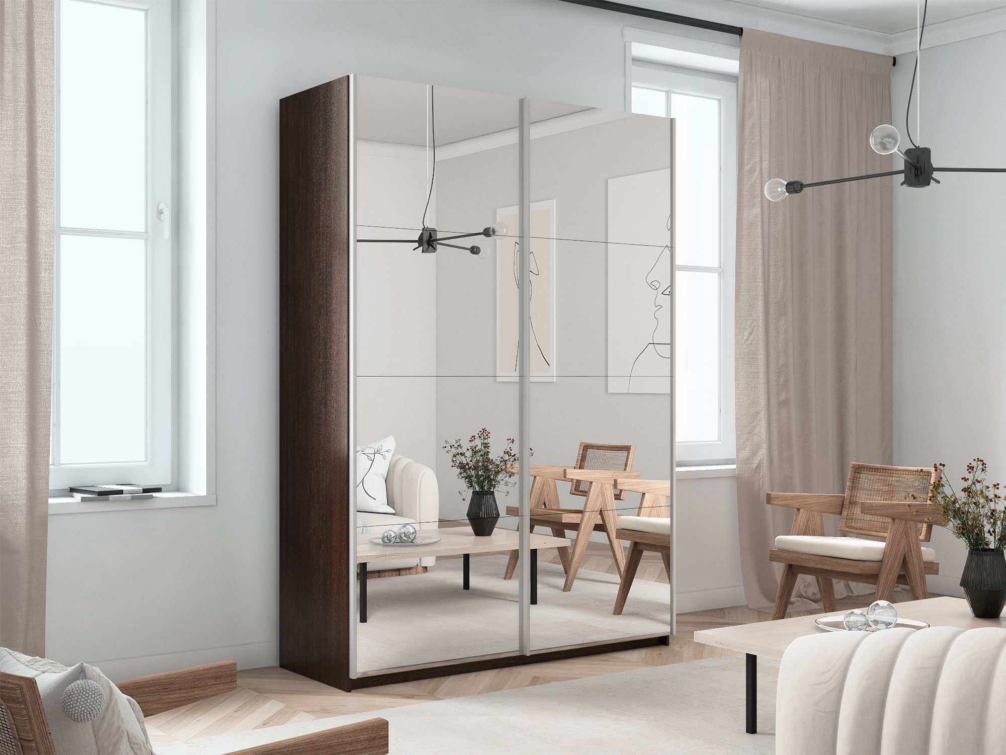 - Шкаф-купе Прайм 2-х дверный 1400 два зеркала Венге