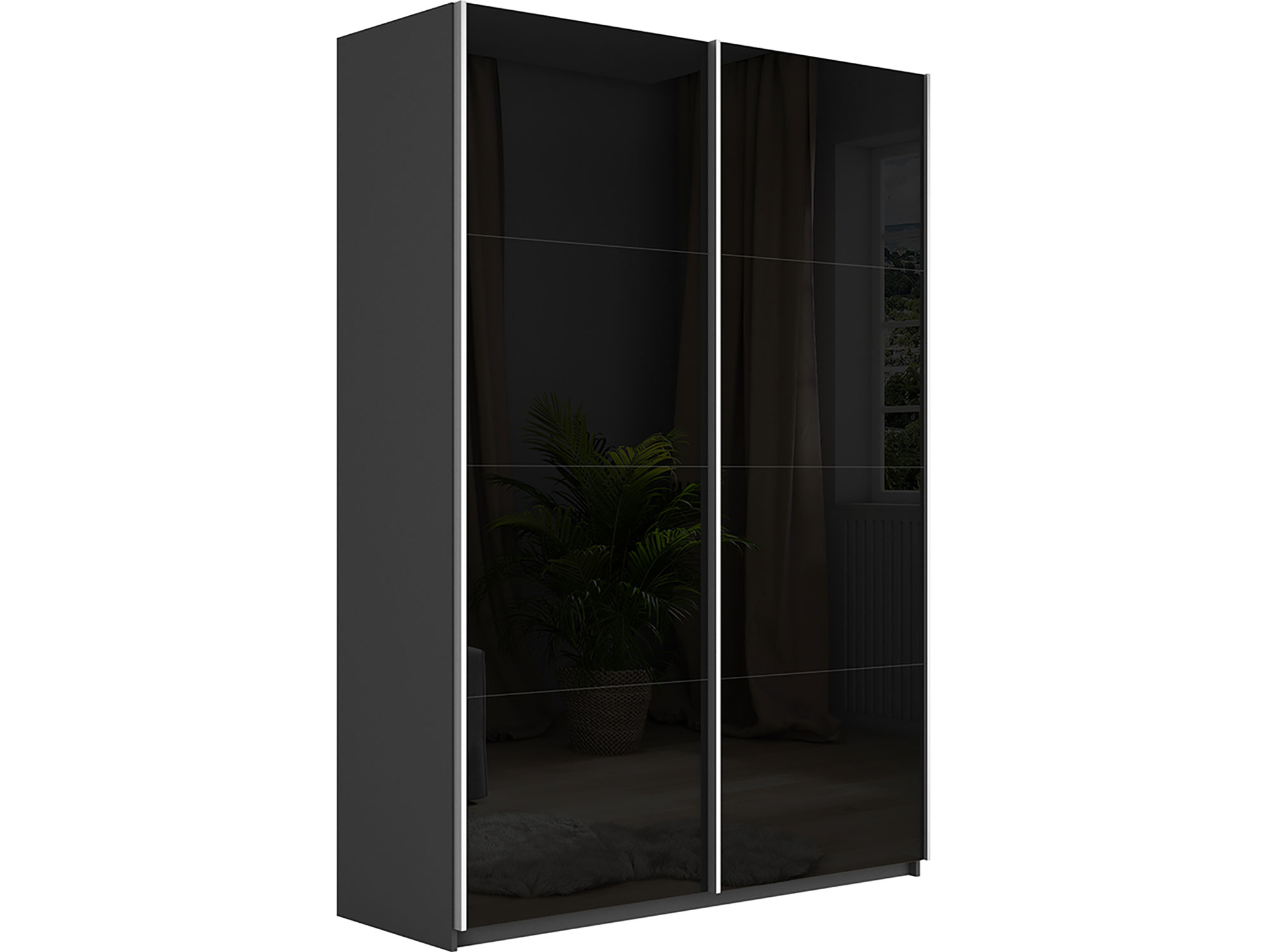 - Шкаф-купе Прайм 2-х дверный 1400 Стекло Черное Серый Диамант