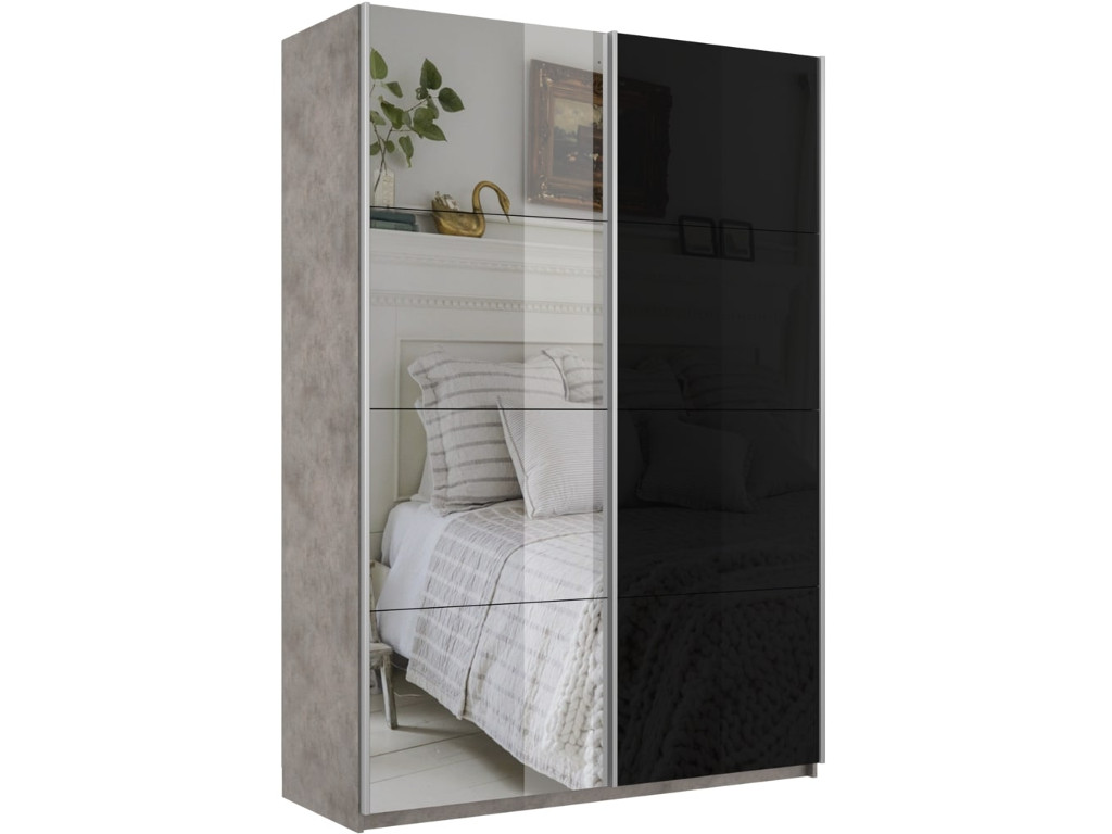 - Шкаф-купе Прайм 2-х дверный 1400 Зеркало/Стекло Черное Бетон