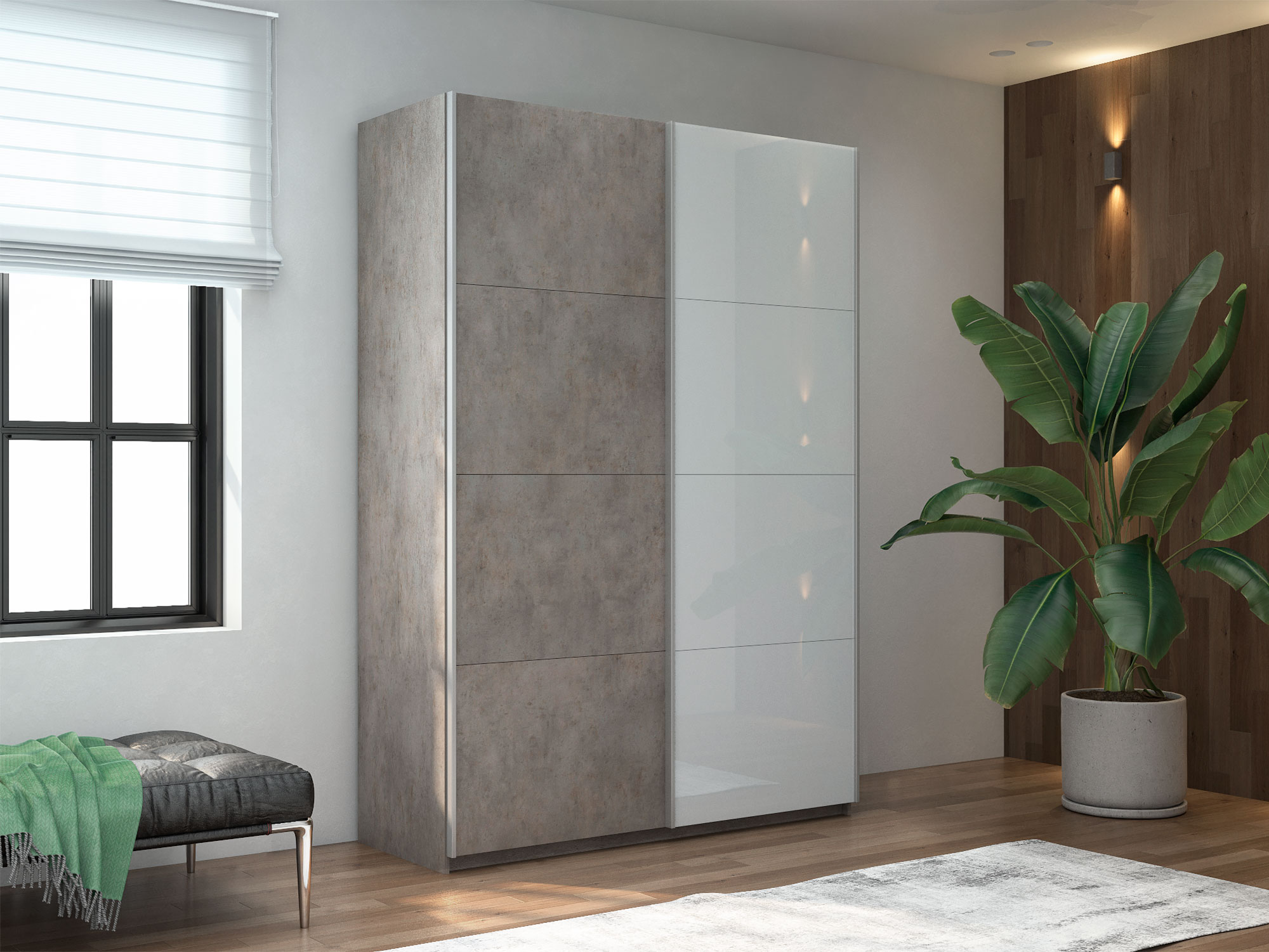 - Шкаф-купе Прайм 2-х дверный 1600 ДСП/Стекло Белое Бетон