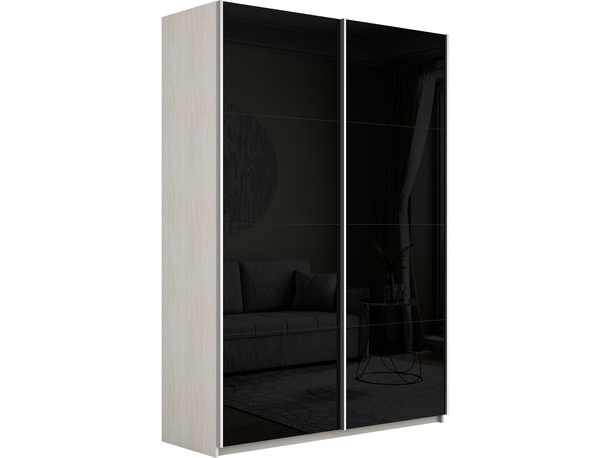 Шкаф-купе Прайм 2-х дверный 1600 Стекло Черное Ясень Анкор Светлый