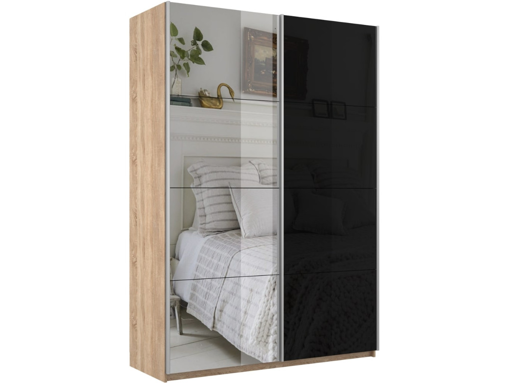Шкаф-купе Прайм 2-х дверный 1600 Зеркало/Стекло Черное Сонома