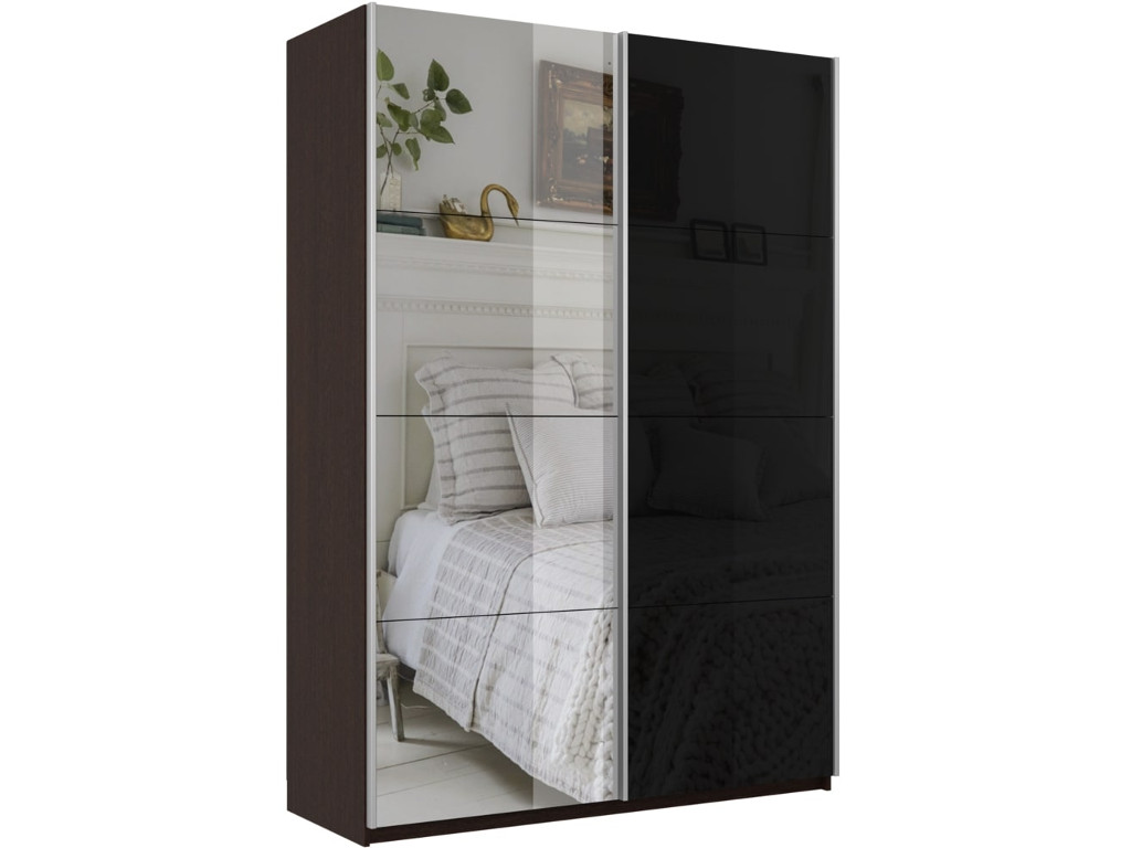 Шкаф-купе Прайм 2-х дверный 1600 Зеркало/Стекло Черное Венге