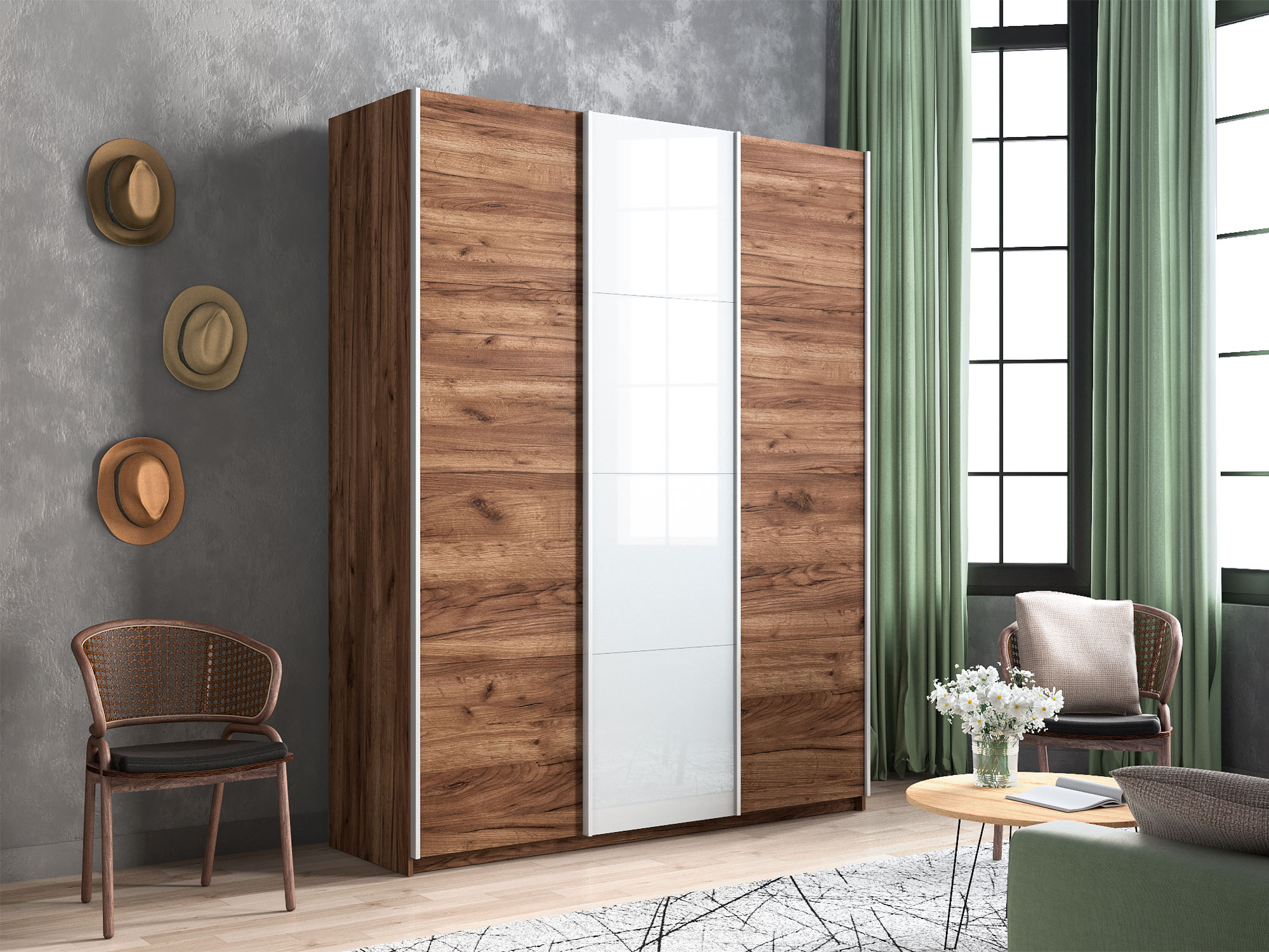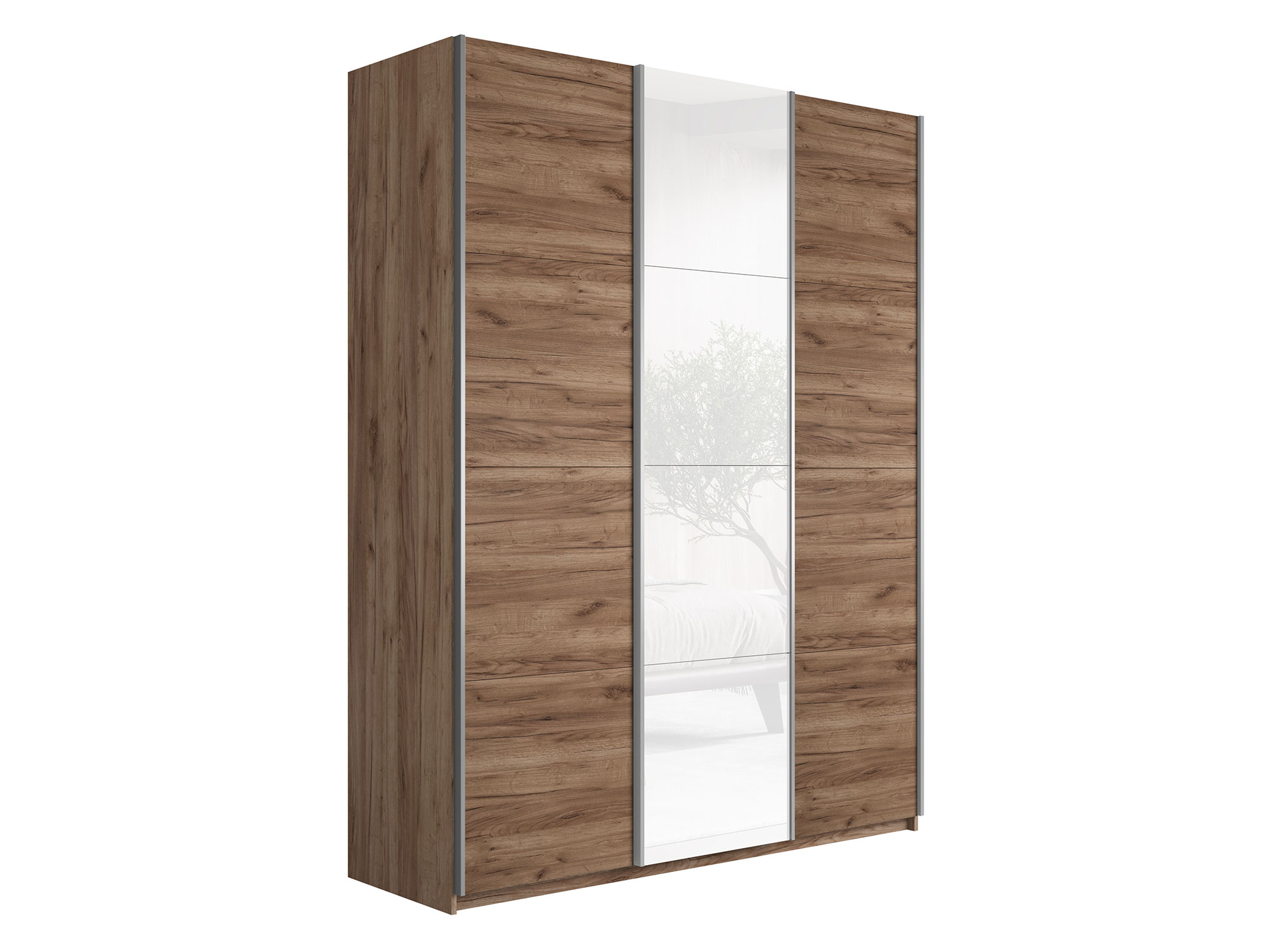 - Шкаф-купе Прайм 3-х дверный 1800 ДСП/Стекло Белое/ДСП Крафт табачный
