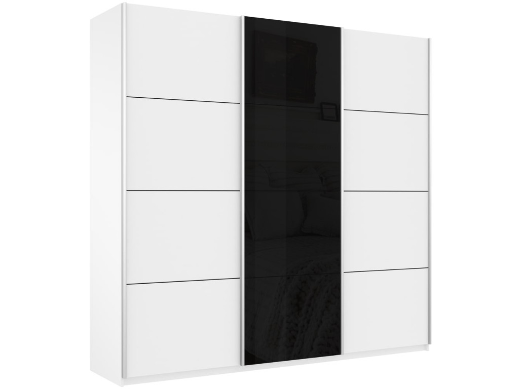 - Шкаф-купе Прайм 3-х дверный 1800 ДСП/Стекло Черное/ДСП Белый Снег