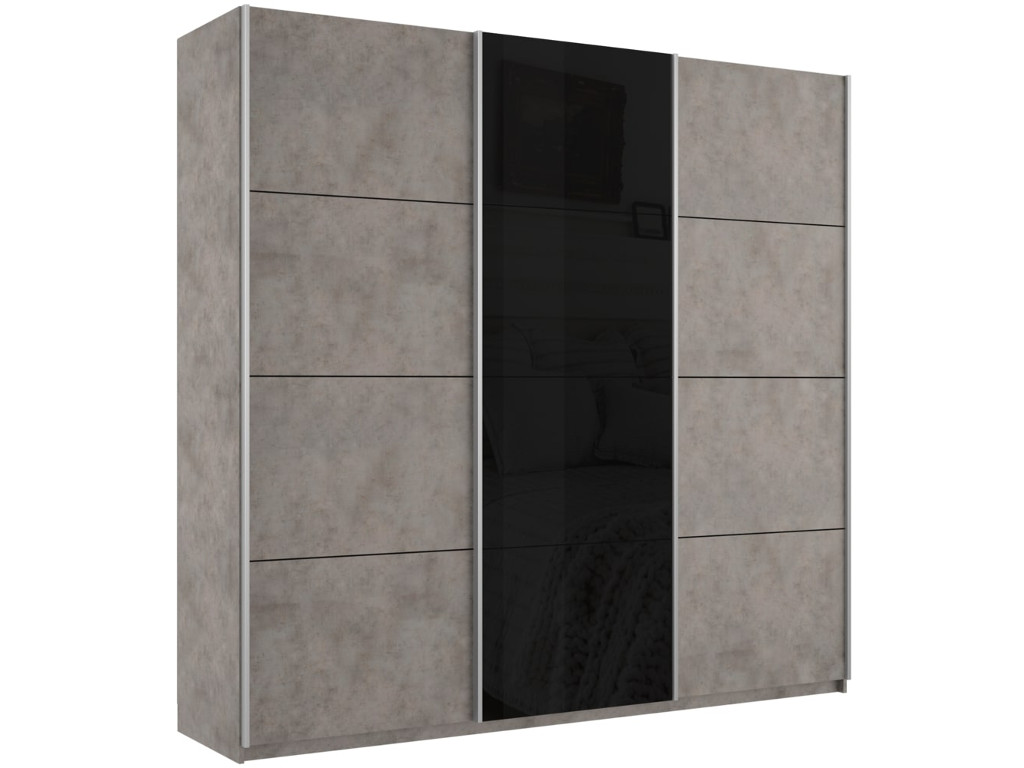 - Шкаф-купе Прайм 3-х дверный 1800 ДСП/Стекло Черное/ДСП Бетон