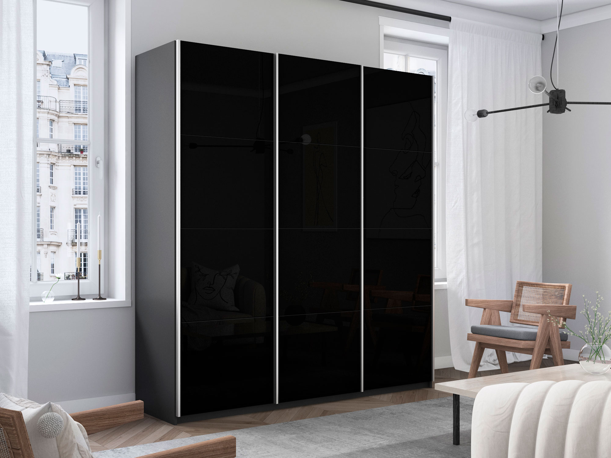 - Шкаф-купе Прайм 3-х дверный 1800 три стекла черные Серый Диамант