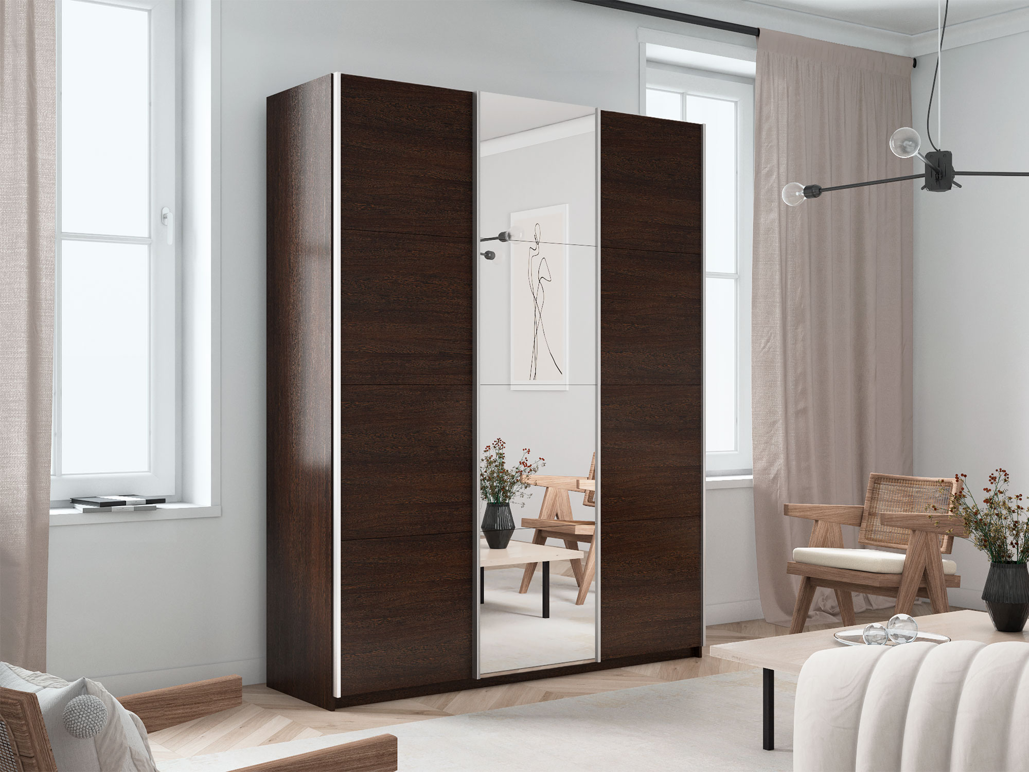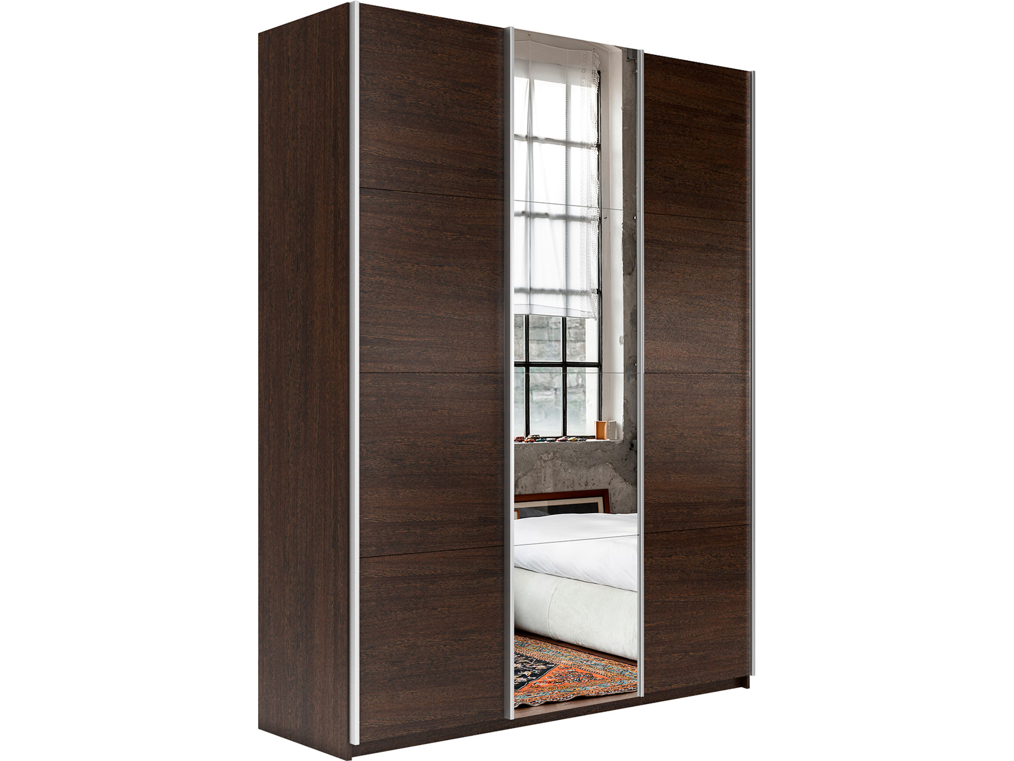 - Шкаф-купе Прайм 3-х дверный 2100 ДСП/зеркало/ДСП Венге