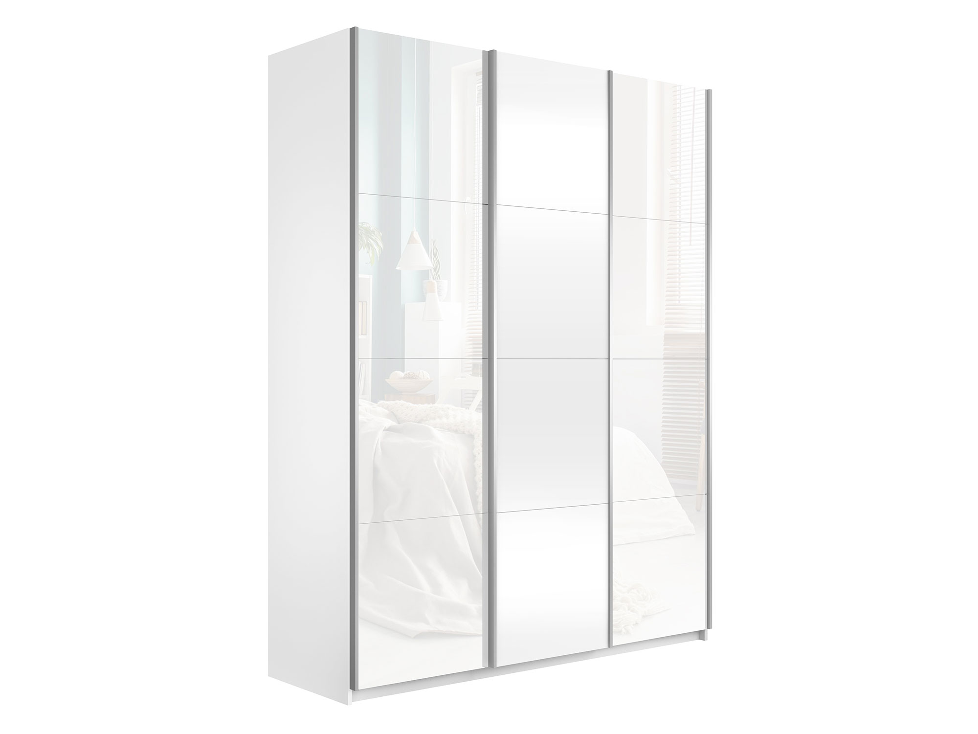- Шкаф-купе Прайм 3-х дверный 2100 два Стекла Белые/ДСП Белый Снег