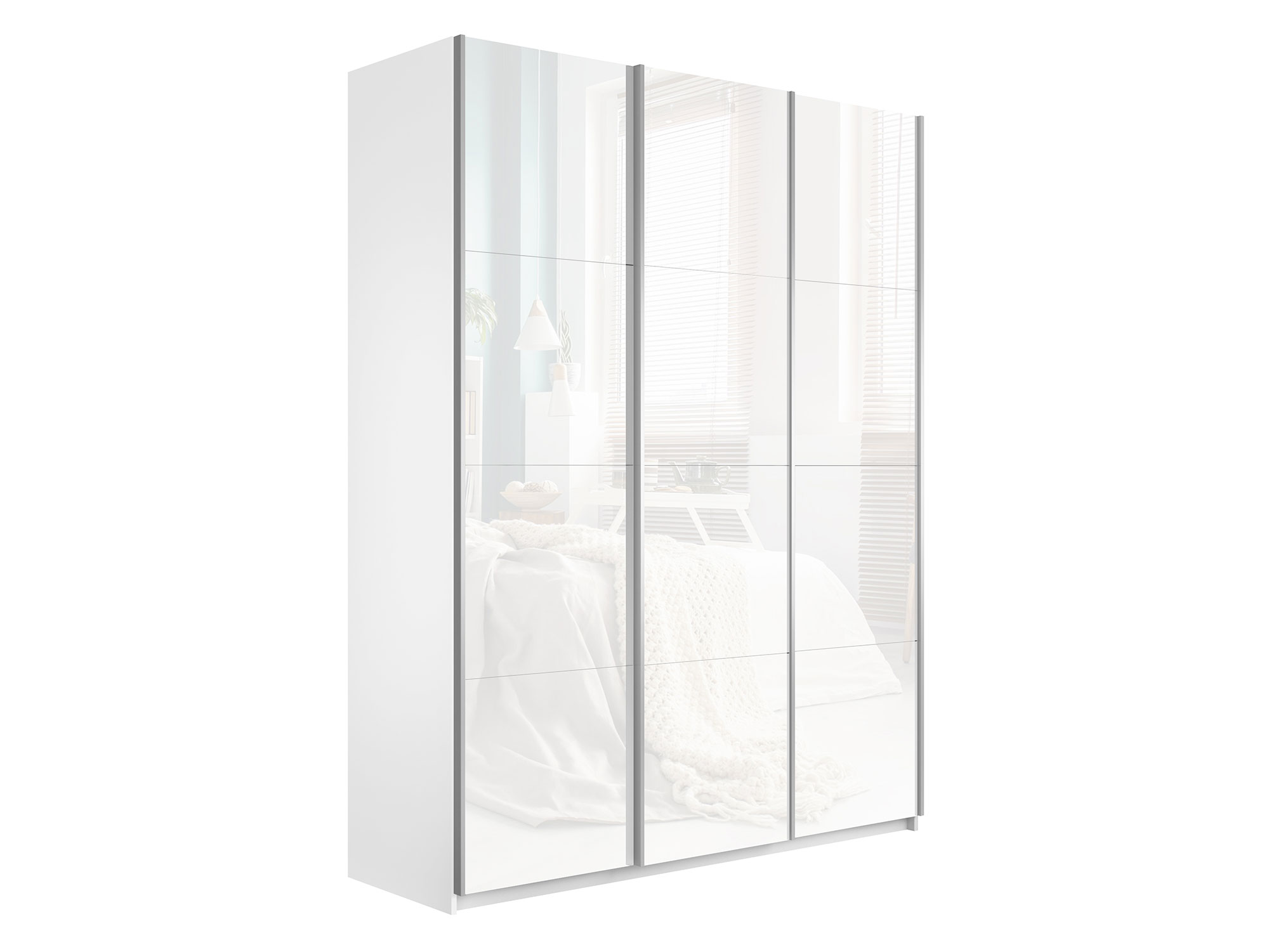 Шкаф-купе Прайм 3-х дверный 2100 три стекла белые Белый Снег