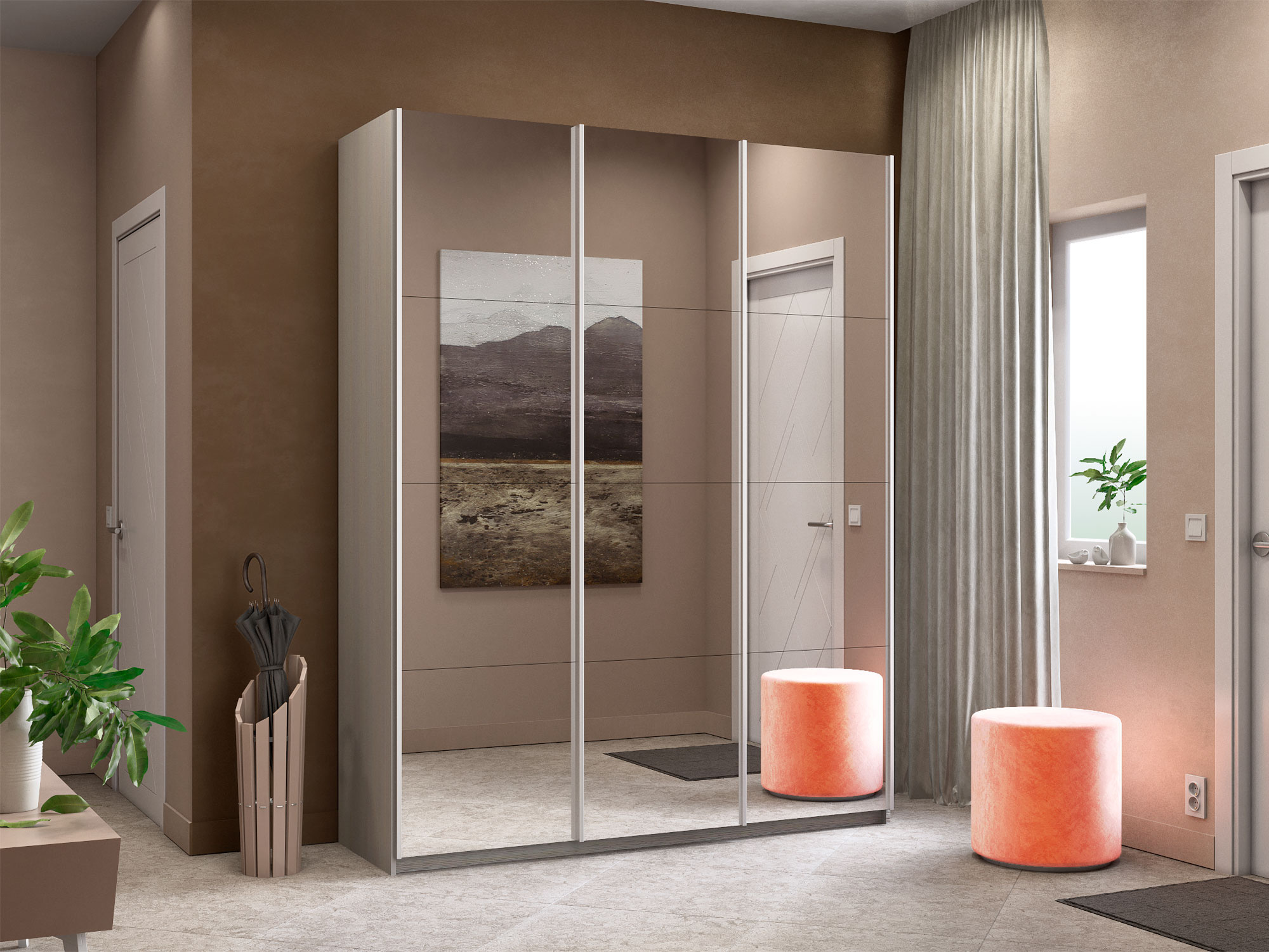 - Шкаф-купе Прайм 3-х дверный 2100 три зеркала Ясень Анкор Светлый