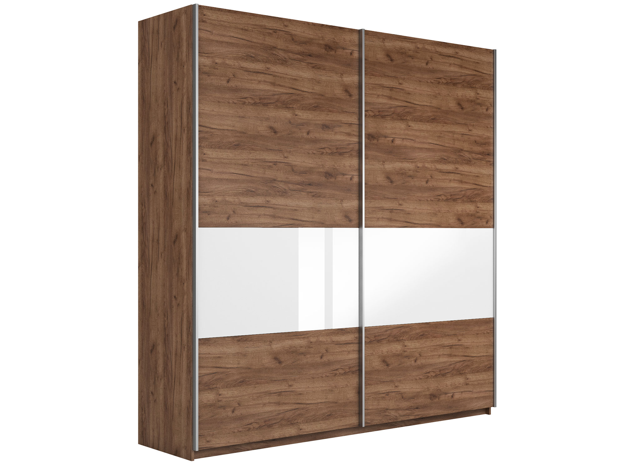 Шкаф-купе Прайм Широкий 2-х дверный ДСП/вставки Стекло Белое Крафт табачный