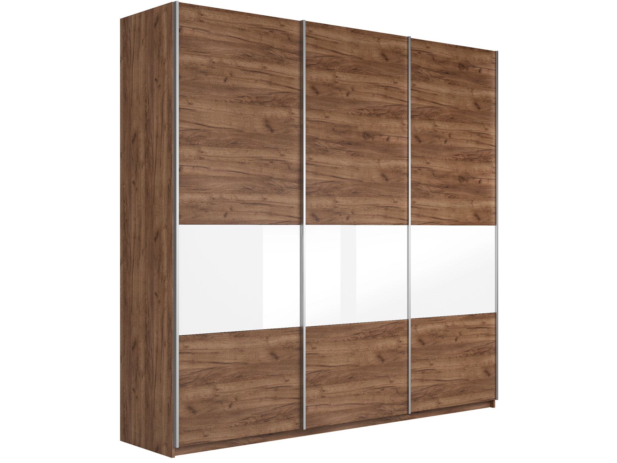 Шкаф-купе Прайм Широкий 3-х дверный ДСП/вставки Стекло Белое Крафт табачный