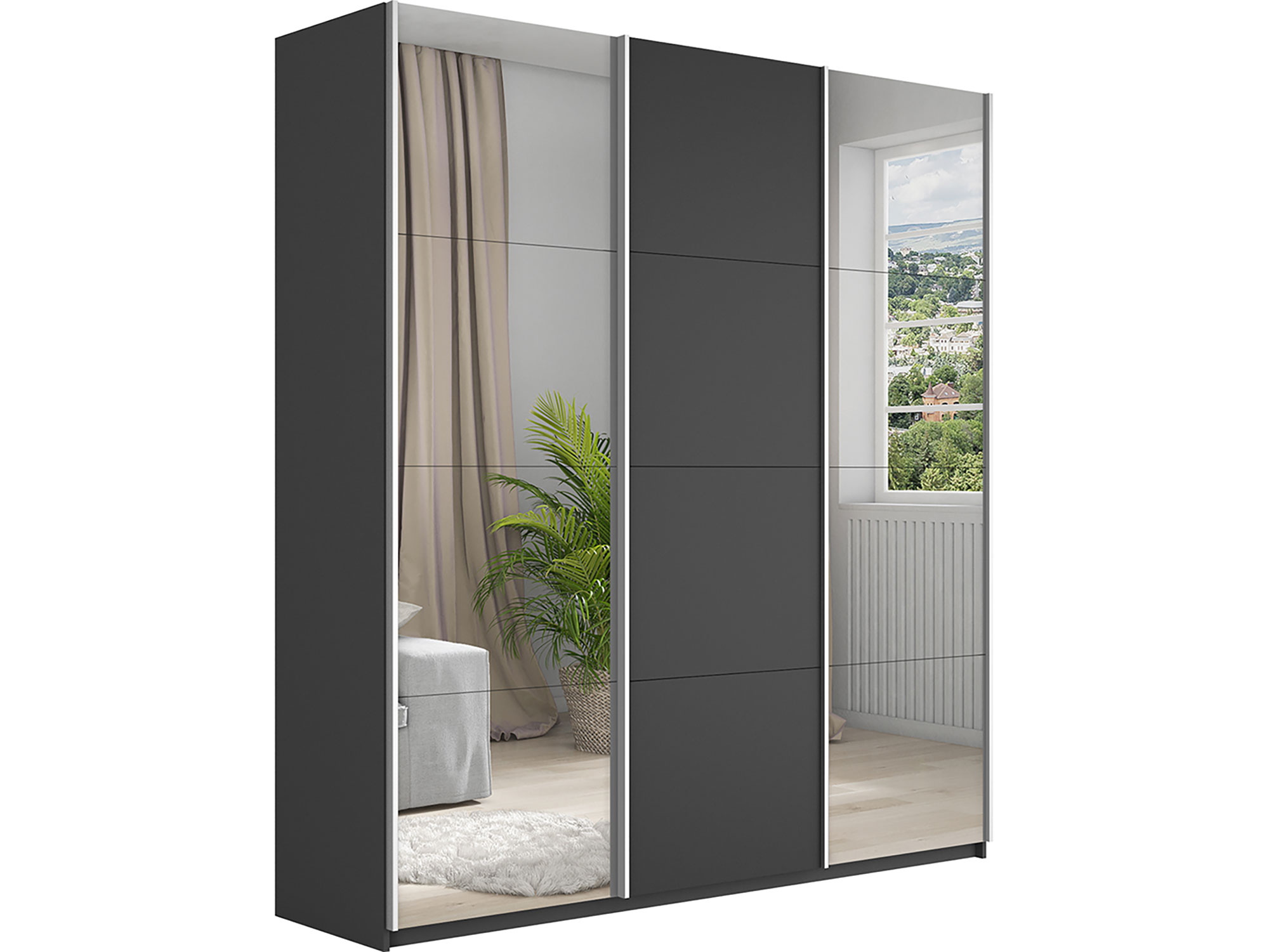 - Шкаф-купе Прайм Широкий 3-х дверный два зеркала/ДСП Серый Диамант