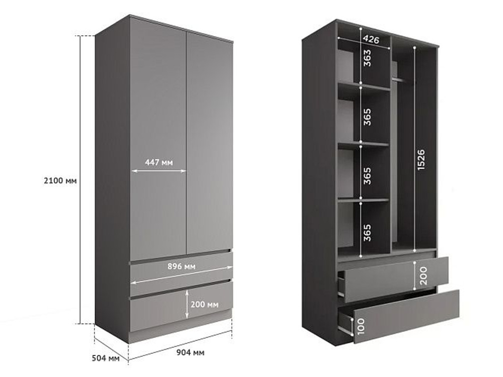 Размеры В*Ш*Г, мм: 2100х904х504