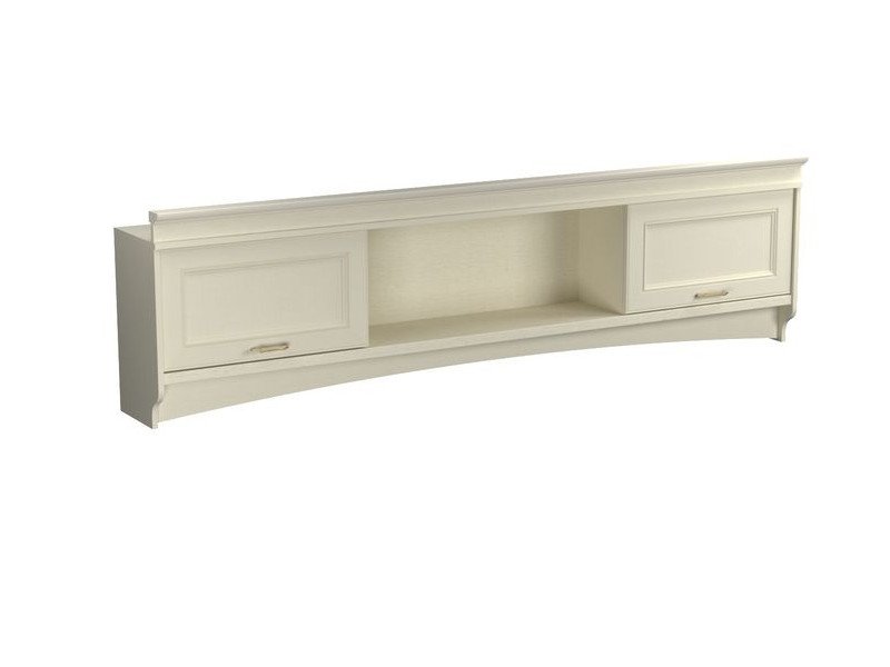 Полка крепится на стену, в случае расположения между шкафами дополнительно рекомендуем прикрепить к бокам шкафа.