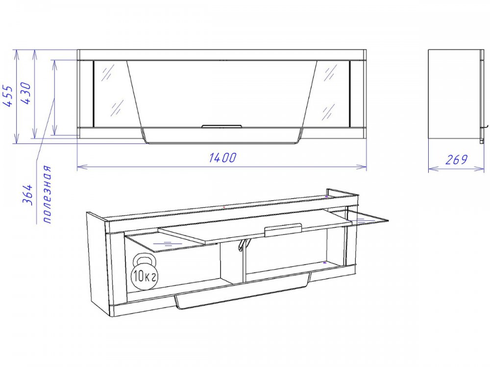 Размер ШхГхВ: 1400*269*455 мм