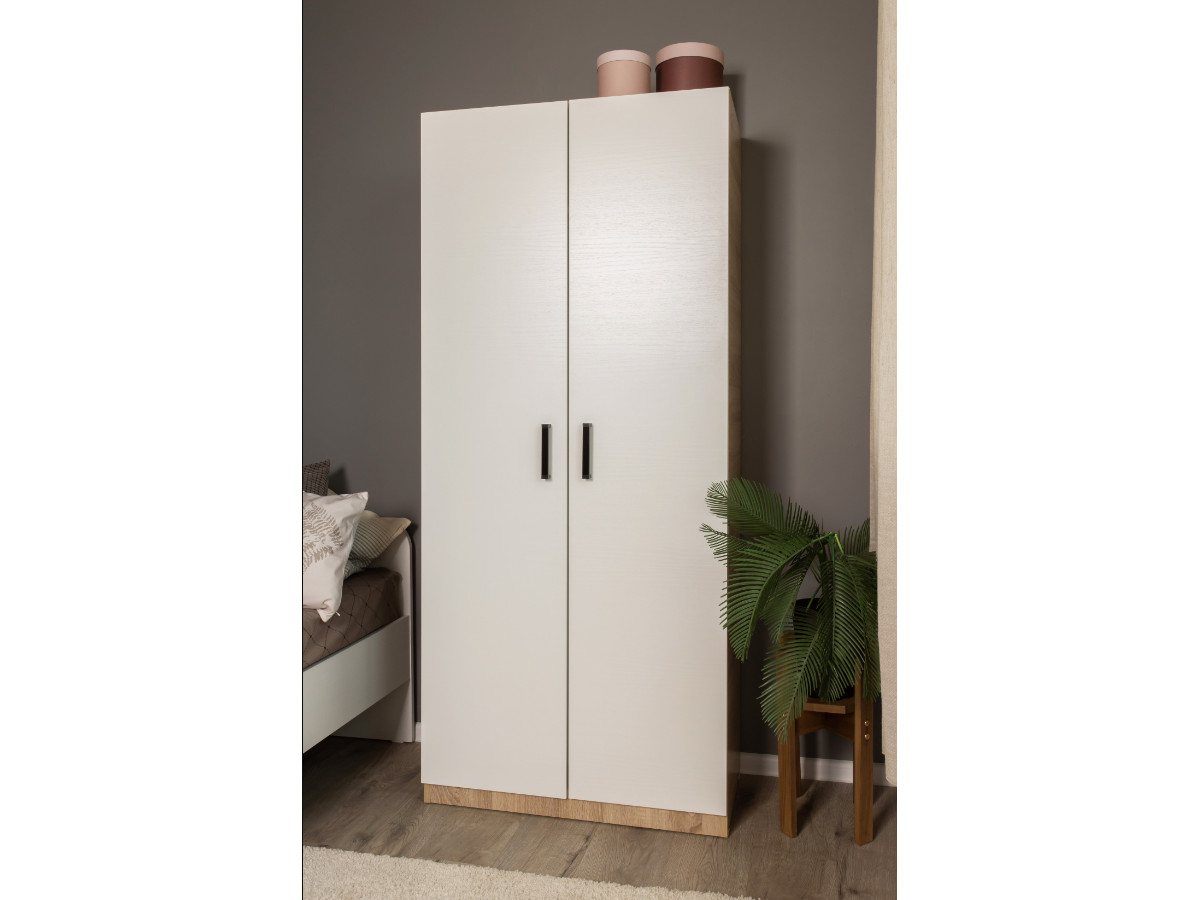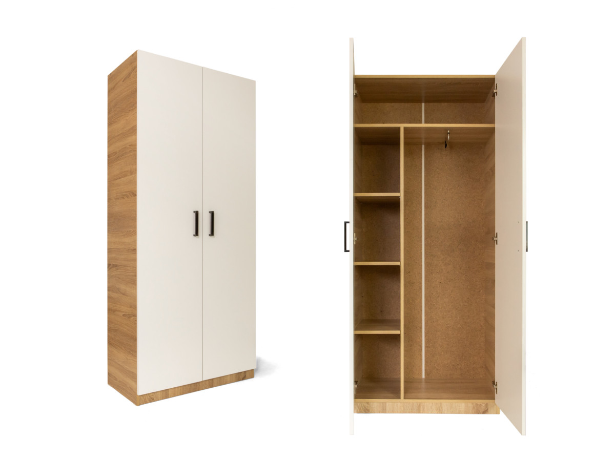 - Функциональное сочетание распашного шкафа со штангой и полочкой для головных уборов.