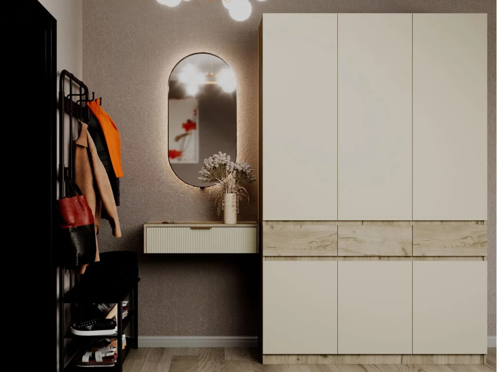 - Шкаф распашной трехстворчатый Атлант Дуб крафт серый/Кашемир