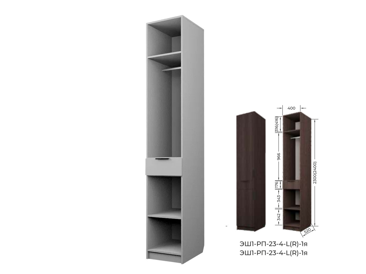 Комплект: ЭШ1-РП-24-4-R-1я,Шкаф с 1 ящиком + ЗС-24-1я,Зеркало для шкафов ЭШ 2400 мм
