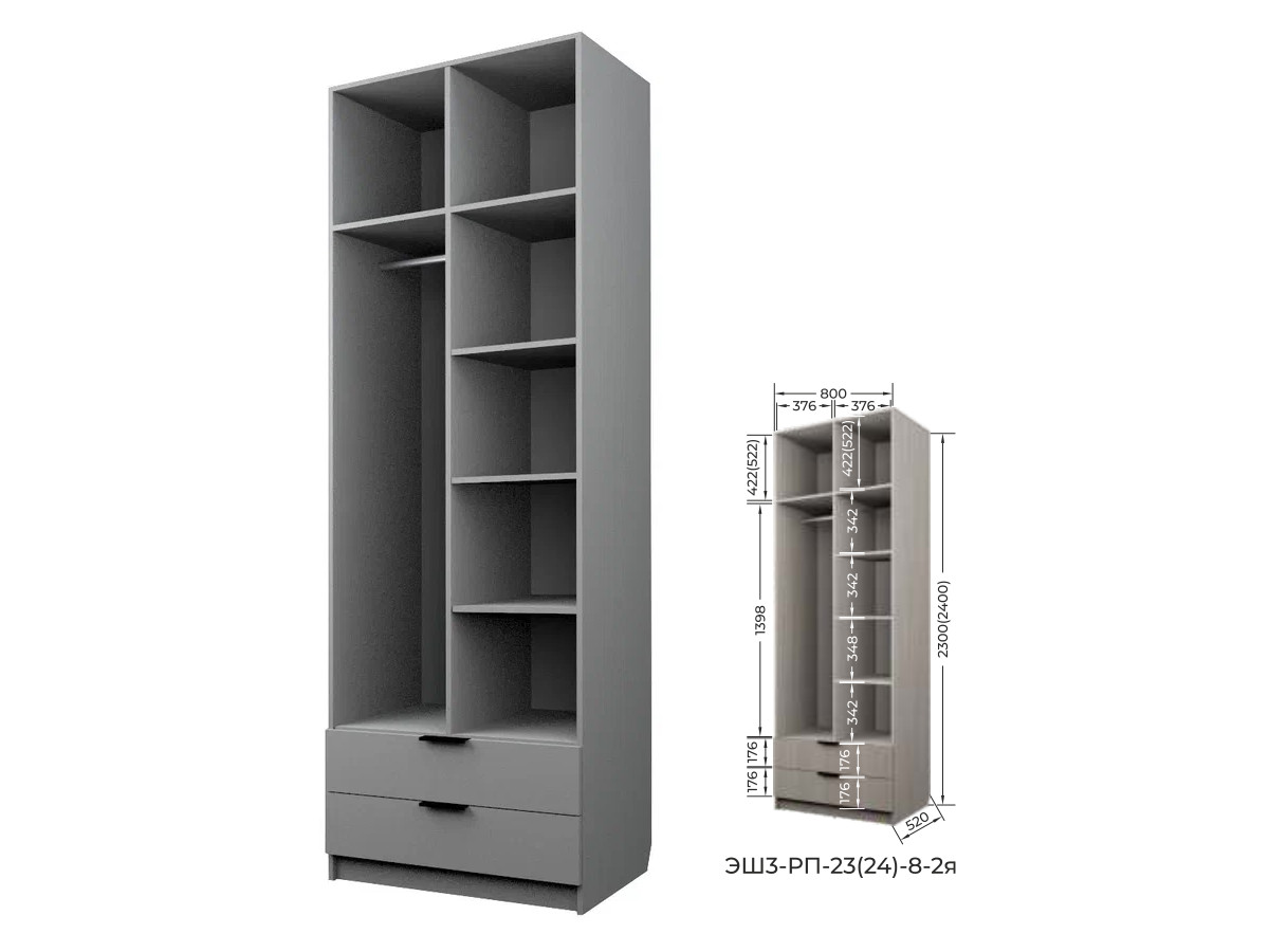 Комплект: ЭШ3-РП-24-8-2я, Шкаф с 2 ящиками+ ЗС-24-2я,Зеркало для шкафов ЭШ 2400 мм