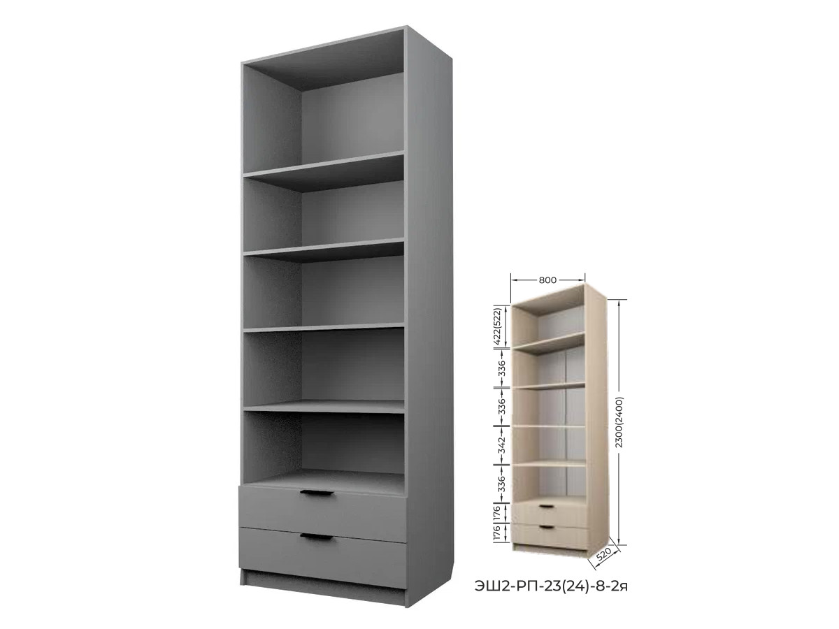 Шкаф с 2 ящиками с полками Экон ЭШ2-РП-23-8-2я с зеркалами
