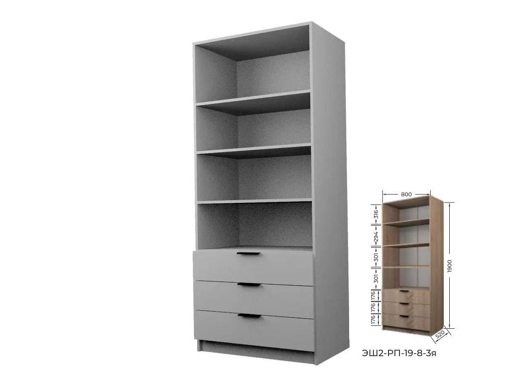 - Шкаф с 3 ящиками с полками Экон ЭШ2-РП-19-8-3я с зеркалами