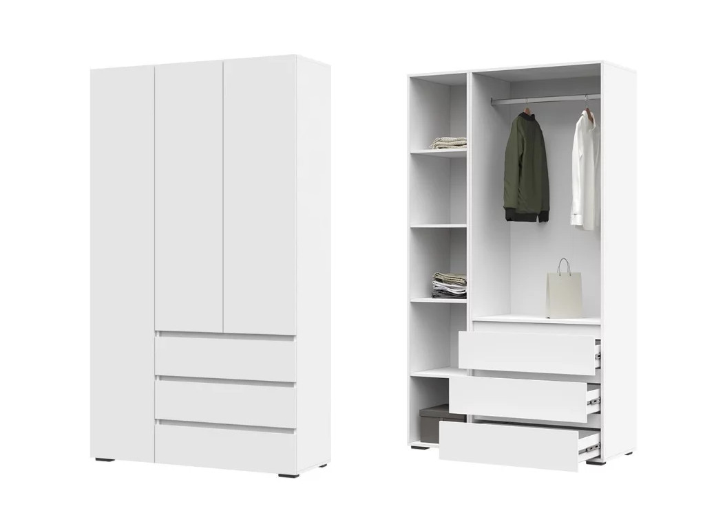- Шкаф с ящиками Хелен 3-х створчатый ШК 06 Белый шагрень