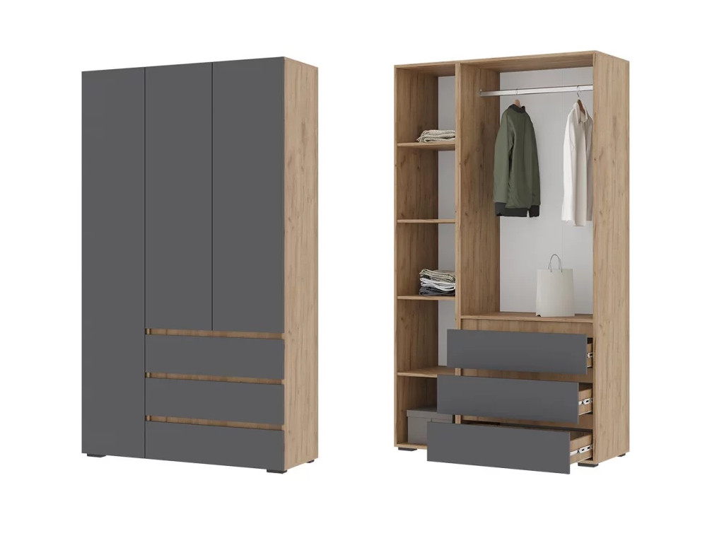 Шкаф с ящиками Хелен 3-х створчатый ШК 06 Дуб крафт золотой-Серый графит