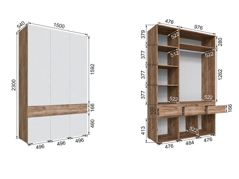 Шкаф трехдверный Мерида дуб крафт табачный/белый