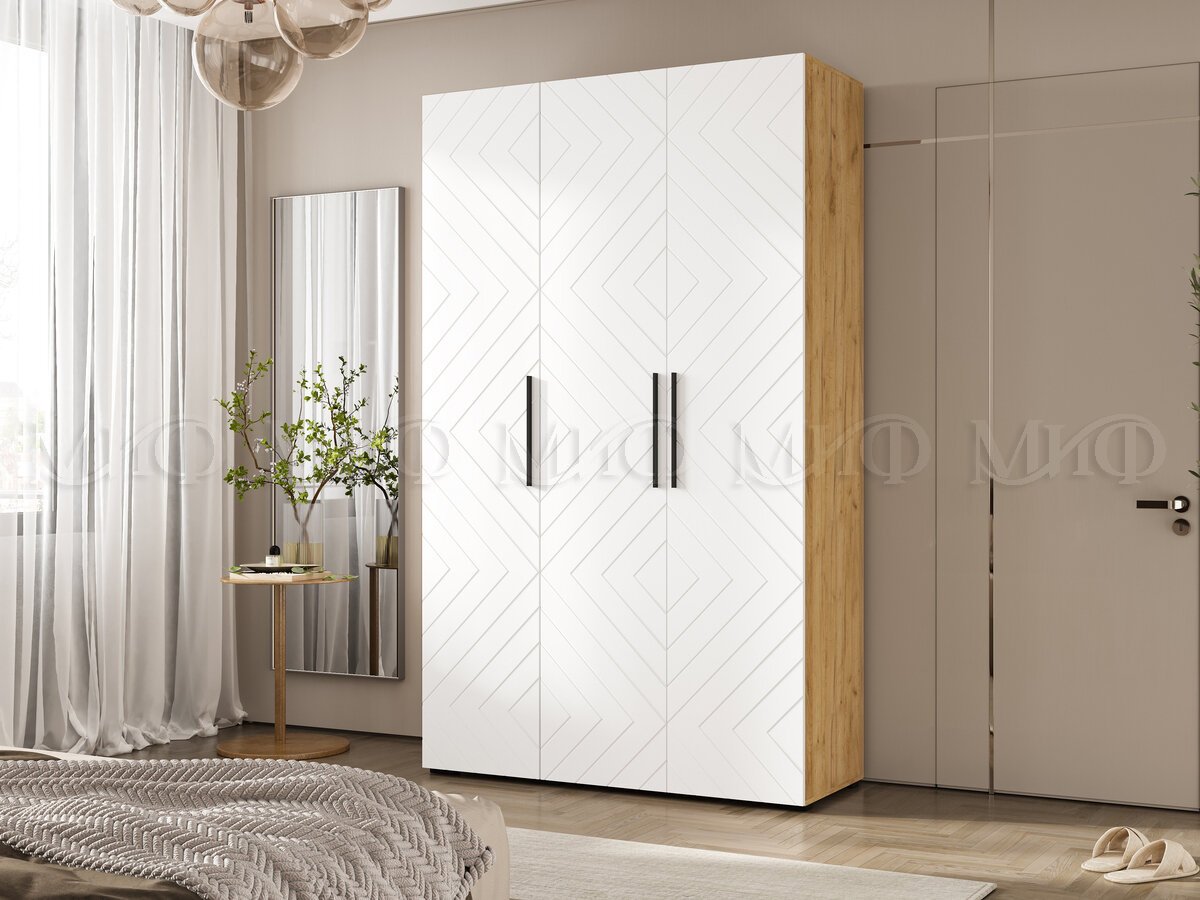 Шкаф трехстворчатый (1350) Флэш Браш Вайт, Дуб Крафт